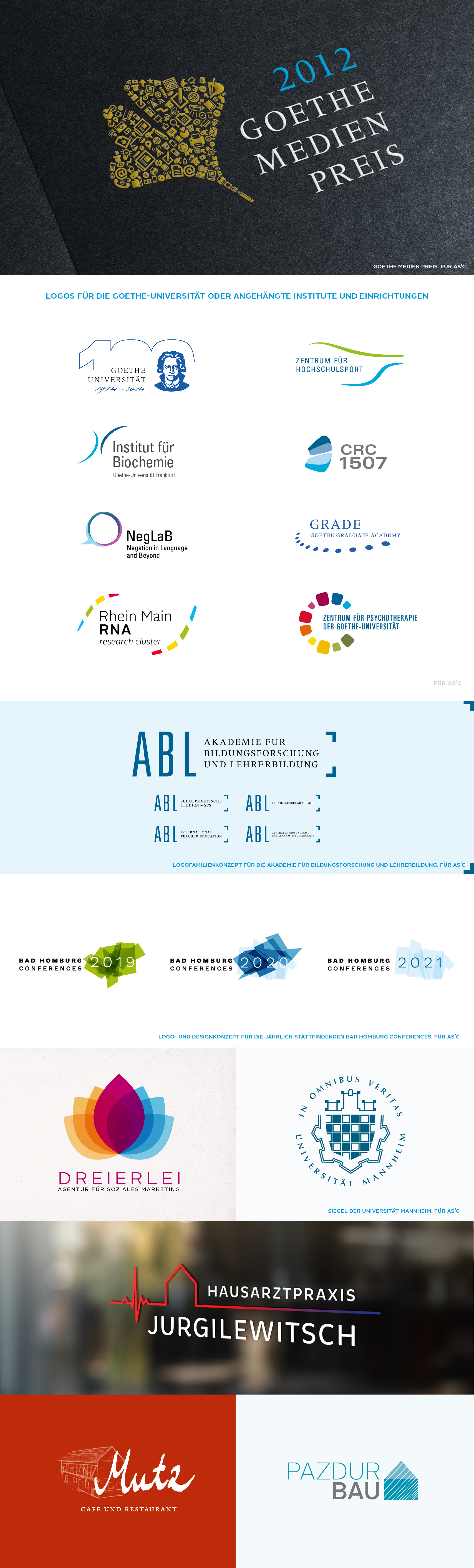 Eine kleine Übersicht der Logoentwicklungen, die ich für eigene Kunden oder als Freelancer erstellt habe.